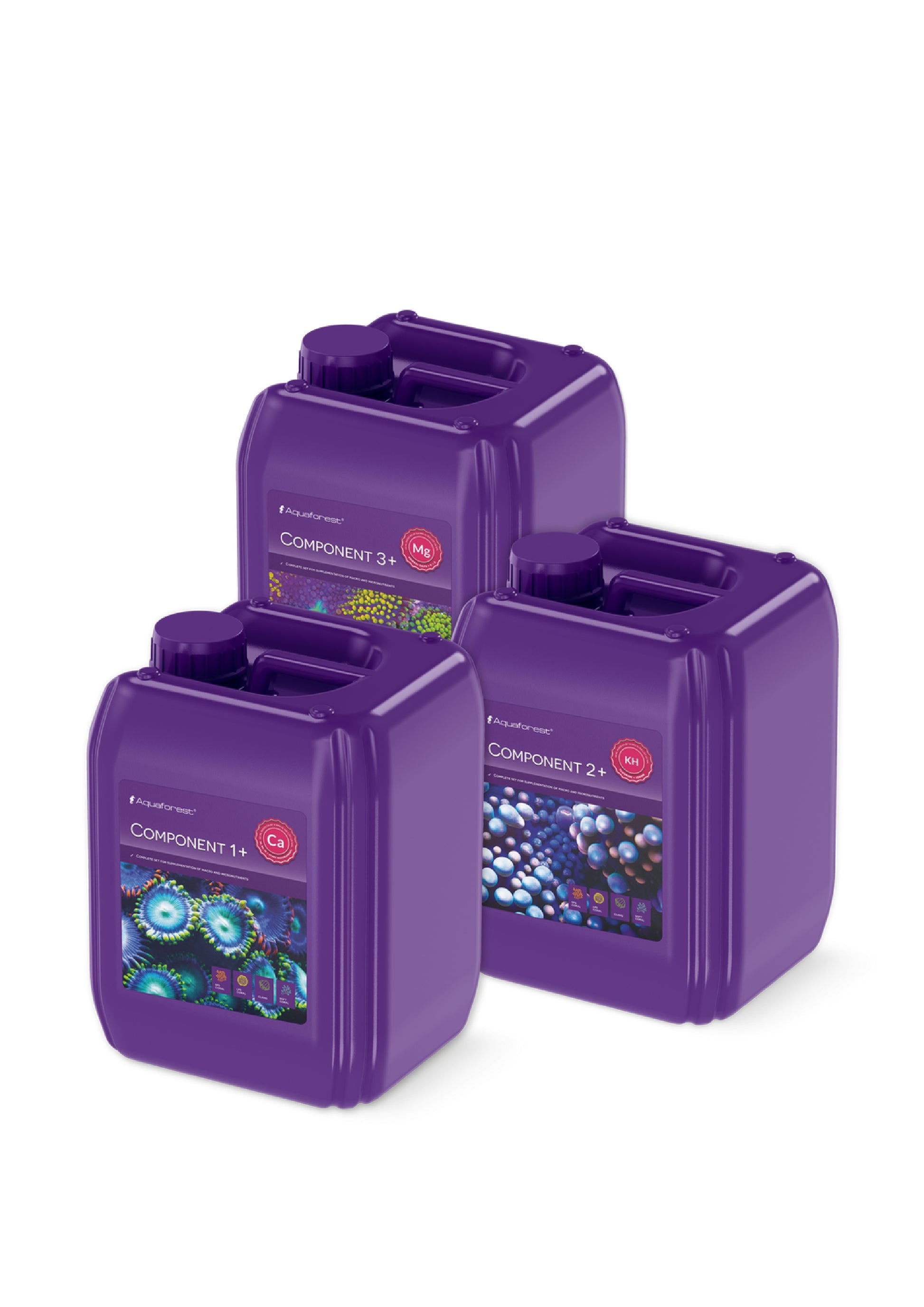 Chemical composition of Component 1+2+3+ is based on the method developed by H. Balling. The formula has been fine tuned in our lab and enriched with trace elements that are fundamental for maintaining marine aquarium organisms in good form. As a result we have composed 3 fluids that are intended for dosing in equal amounts on regular basis. Component 1+2+3+ is designed to fulfil coral demands not only in terms of Magnesium and Calcium, but also in terms of other elements which require careful and systematic dosing, but are notoriously difficult to assess. DOSAGE: Needs to be adjusted according to the consumption of macro-nutrients, and based on critical water parameters like Calcium, Magnesium and KH. If one or two parameters are still not balanced- we recommend to continue with administering equal doses of each component, and take advantage of one of our additives (Calcium, Magnesium, KH Buffer) to restore desired level(s).